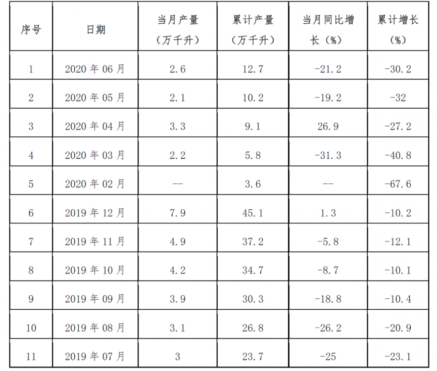表 2 近一年中國白酒(折65度,商品量)產(chǎn)量及增速統(tǒng)計(jì)表